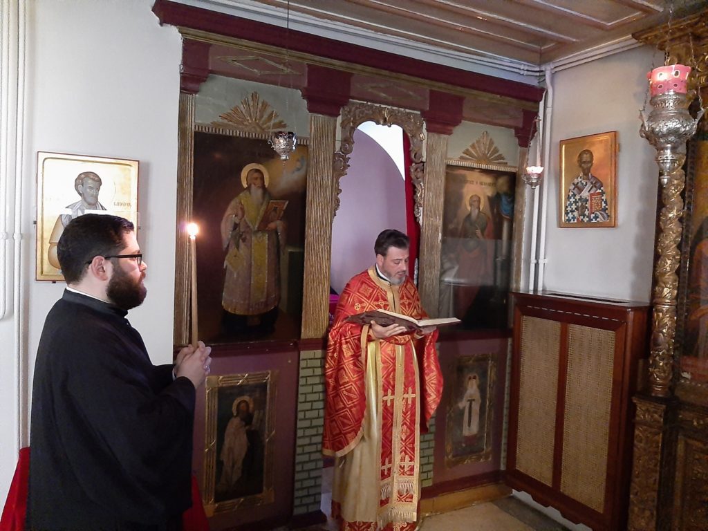 Η Ακολουθία του Όρθρου και η Θεία Λειτουργία τελέστηκαν από τον Καθηγουμένο, Θεοφιλεστάτου Επισκόπου Αραβισσού κ. Κασσιανού, στο προς τιμήν του ιδρυτή της Σχολής, Πατριάρχου Γερμανού Δ΄, παρεκκλήσιο του Αγίου Γερμανού του Ομολογητού, Πατριάρχου Κωνσταντινουπόλεως (740 μ.Χ.), που βρίσκεται στον νάρθηκα του ναϋδρίου της Σχολής.