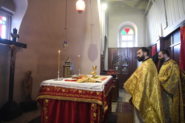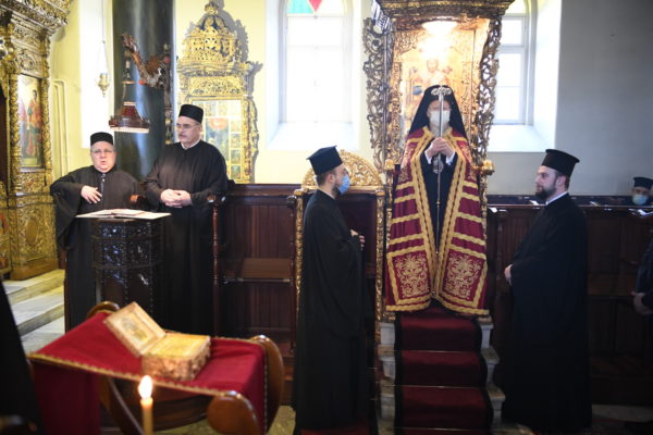 Νωρίτερα, ο Παναγιώτατος χοροστάτησε στη Θεία Λειτουργία που τελέστηκε στο περικαλλές Καθολικό της Ι.Μονής, κατά την οποία εκκλησιάστηκαν οι Σεβ. Αρχιερείς Γέρων Δέρκων κ. Απόστολος, Πρόεδρος της Εφορείας της Ι.Μονής, Γέρων Πριγκηποννήσων κ. Δημήτριος, Ανθηδώνος κ. Νεκτάριος, Επίτροπος του Παναγίου Τάφου στην Πόλη, Σηλυβρίας κ. Μάξιμος, μέλος της Εφορείας της Ι. Μονής, κληρικοί και μοναχοί, καθώς και πιστοί από την Πόλη και τα Πριγκηπόννησα. Μετά την απόλυση ο Παναγιώτατος τέλεσε Τρισάγιο υπέρ αναπαύσεως της ψυχής του αειμνήστου Μητροπολίτου Σταυρουπόλεως κυρού Μαξίμου, τελευταίου Σχολάρχη της Ι.Θεολογικής Σχολής, από τον θάνατο του οποίου συμπληρώθηκαν φέτος 30 χρόνια.