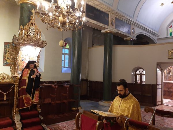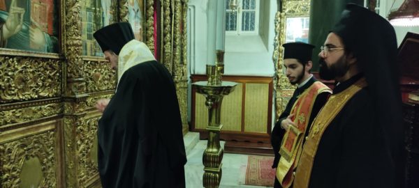 Τελέστηκε την Παρασκευή της Ε’ Εβδομάδος της Μεγάλης Τεσσαρακοστής, κεκλεισμένων των θυρών, λόγω των ισχυόντων περιορισμών κυκλοφορίας, η ακολουθία του Ακαθίστου Ύμνου προς την Υπεραγία Θεοτόκο στο ναΰδριο της Θεολογικής Σχολής της Χάλκης, χοροστατούντος του Καθηγουμένου, Θεοφιλεστάτου Επισκόπου Αραβισσού κ. Κασσιανού.