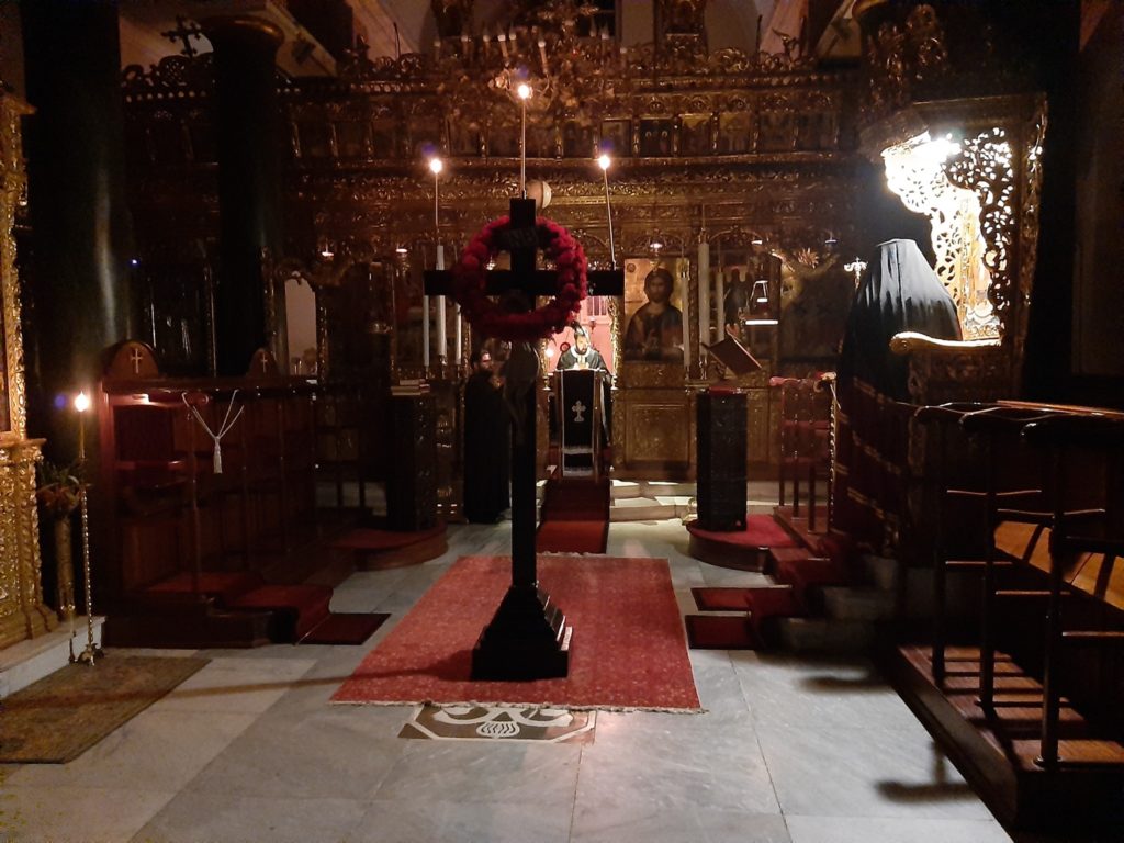 Σε κατανυκτική ατμόσφαιρα τελέστηκε το Εσπέρας της Αγίας και Μεγάλης Πέμπτης (29/04/2021) στο ναΰδριο της Θεολογικής Σχολής της Χάλκης η Ακολουθία των Αγίων Παθών του Κυρίου (Όρθρος Μεγάλης Παρασκευής), χοροστατούντος του Καθηγουμένου, Θεοφιλεστάτου Επισκόπου Αραβισσού κ. Κασσιανού, κεκλεισμένων των θυρών λόγω των ισχυόντων περιορισμών για την προστασία της δημόσιας υγείας.