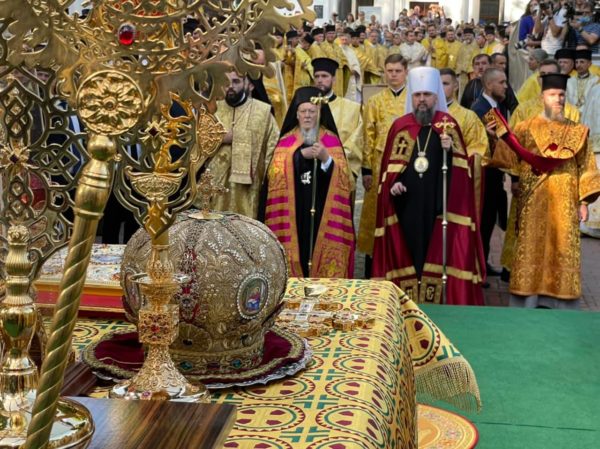Θεία Λειτουργία τελέσθηκε το πρωί της Κυριακής 22 Αυγούστου στον ιστορικό Ιερό Ναό της Αγίας Σοφίας στο Κίεβο προεξάρχοντος του Παναγιωτάτου Οικουμενικού Πατριάρχου κ.κ. Βαρθολομαίου και συλλειτουργούντος του Μακαριωτάτου Μητροπολίτου Κιέβου και πάσης Ουκρανίας κ.κ. Επιφανίου.