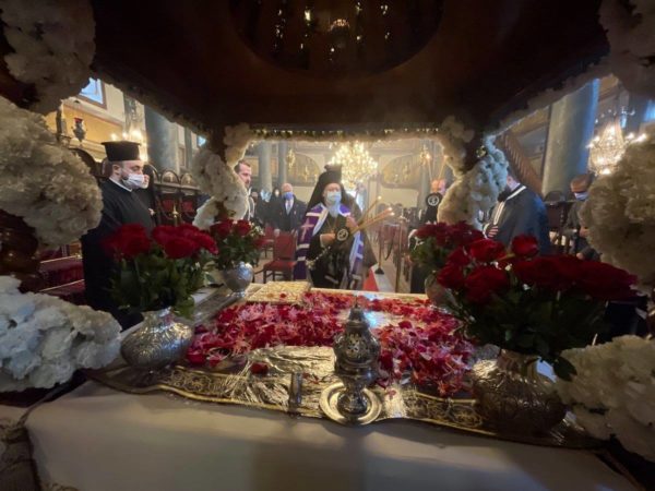 Εκκλησιάστηκαν η Γενική Πρόξενος της Ελλάδος στην Πόλη κ. Γεωργία Σουλτανοπούλου, με τον σύζυγό της, Πρέσβη κ. Ιωάννη Ραπτάκη, Άρχοντες Οφφικιάλιοι, και μικρός αριθμός προσκυνητών, λόγω των αυστηρών περιοριστικών μέτρων στις μετακινήσεις, στο πλαίσιο της αντιμετώπισης της Πανδημίας.