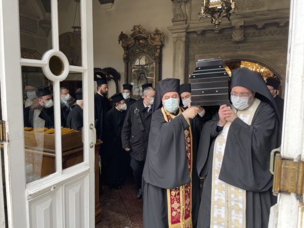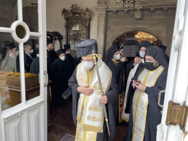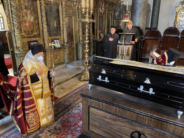 Στις 19 Απριλίου του 2021, το πρωί στον Πάνσεπτο Πατριαρχικό Ναό του Αγίου Γεωργίου τελέστηκε Αρχιερατική Θεία Λειτουργία των Προηγιασμένων Δώρων στο τέλος της οποίας αναγνώστηκε νεκρώσιμο τρισάγιο υπέρ της ψυχής του μακαριστού από τον Μητροπολίτη Καλλιουπόλεως και Μαδύτου Στέφανο. Η νεκρώσιμος ακολουθία εψάλη στις 12.00 μ.μ. μέσα σε κλίμα συγκίνησης προεξάρχοντος του Οικουμενικού Πατριάρχου Βαρθολομαίου, συμπαραστατουμένου από τους Μητροπολίτες Γέροντα Δέρκων Απόστολο, Γέροντα Πριγκηποννήσων Δημήτριο, Φιλαδελφείας Μελίτωνα, Μυριοφύτου και Περιστάσεως Ειρηναίο, Μύρων Χρυσόστομο, Σασίμων Γεννάδιο, Καλλιουπόλεως και Μαδύτου Στέφανο και Σαράντα Εκκλησιών Ανδρέα.