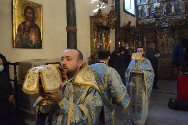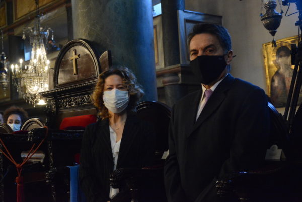 Εκκλησιάστηκαν ο Θεοφιλ. Επίσκοπος Αλικαρνασσού κ. Αδριανός, κληρικοί, η Ηγουμένη του Ιερού Ησυχαστηρίου Τιμίου Προδρόμου Ακριτοχωρίου Γερόντισσα Ιακώβη, με μοναχές της Αδελφότητός της, ο Εντιμ. κ. Ιωάννης Μπουρνούς, Βουλευτής Λέσβου, ως εκπρόσωπος της Βουλής των Ελλήνων, η Γενική Πρόξενος της Ελλάδος στην Πόλη Ευγεν. κ. Γεωργία Σουλτανοπούλου, με τον σύζυγό της Εξοχ. κ. Ιωάννη Ραπτάκη, Πρέσβη της Ελλάδος στο Ην. Βασίλειο, ο Γενικός Πρόξενος της Ουκρανίας στην Πόλη Εντιμ. κ. Roman Nedilskyi, με την σύζυγό του και στελέχη του Προξενείου, Άρχοντες Οφφικιάλιοι της Μ.τ.Χ.Ε. και πλήθος πιστών από την Πόλη και το εξωτερικό.