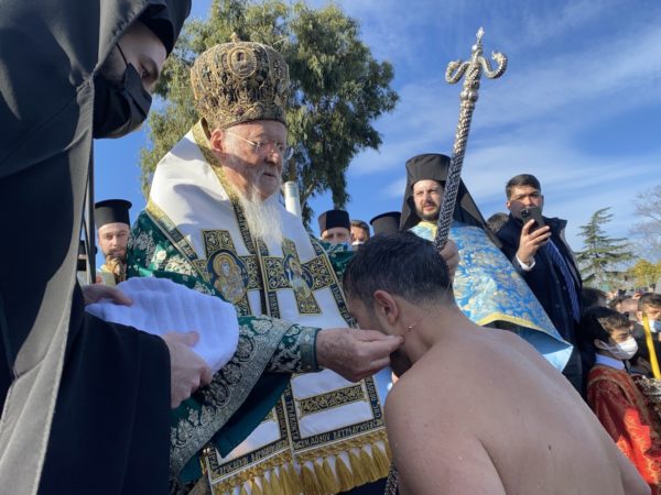 Μετά το τέλος της Θείας Λειτουργίας ο Οικουμενικός Πατριάρχης, οι Αρχιερείς, οι επίσημοι και ο πιστός λαός εν πομπή μετέβησαν στην προκυμαία του Φαναρίου όπου ο Παναγιώτατος προεξήρχε της τελετής του Αγιασμού των υδάτων και της καταδύσεως του Τιμίου Σταυρού στον Κεράτιο Κόλπο.