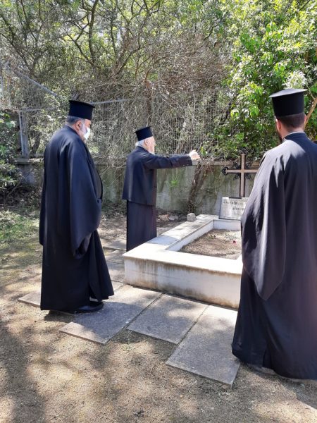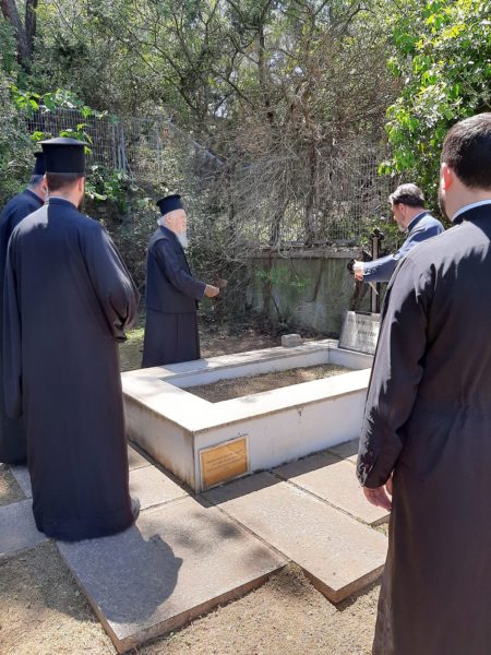 Επί του τάφου του προκατόχου του, Πατριάρχου Νεοφύτου Η’, κειμένου στο κοιμήτηριο της Θεολογικής Σχολής της Χάλκης, μετέβη σήμερα ο Οικουμενικός Πατριάρχης κ.κ. Βαρθολομαίος, συνοδευόμενος από τον Καθηγούμενο, Θεοφιλέστατο Επίσκοπο Αραβισσού κ. Κασσιανό και τον Σεβασμιώτατο Αρχιεπίσκοπο Ανθηδώνος κ. Νεκτάριο, Επίτροπο του Παναγίου Τάφου ενταύθα. Ο Πατριάρχης εναπέθεσε άνθη στον τάφο του Νεοφύτου Η’ και εδεήθη υπέρ αναπαύσεως της ψυχής αυτού.