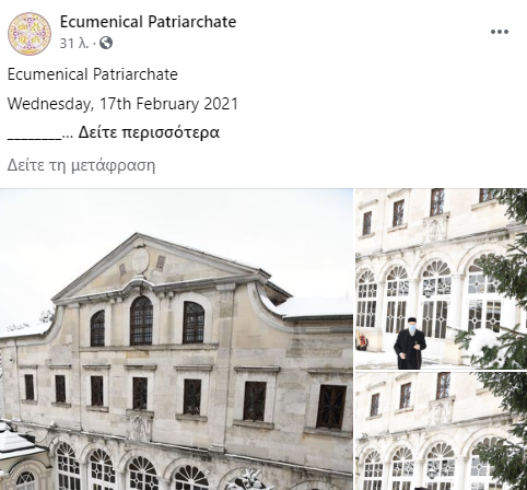 Χιονισμένο συνεχίζει να είναι το Φανάρι και ο Πάνσεπτος Πατριαρχικός Ναός του Αγίου Γεωργίου στην Κωνσταντινούπολη. Στα φωτογραφικά στιγμιότυπα, ο Παναγιώτατος Οικουμενικός Πατριάρχης κ.κ. Βαρθολομαίος, έξω στον περίβολο, σε μία μικρή βόλτα στο κατάλευκο τοπίο.