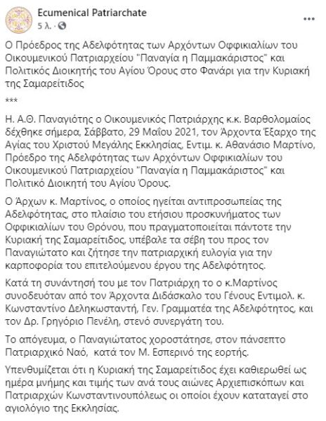 Source: Fb Ecumenical Patriarchate