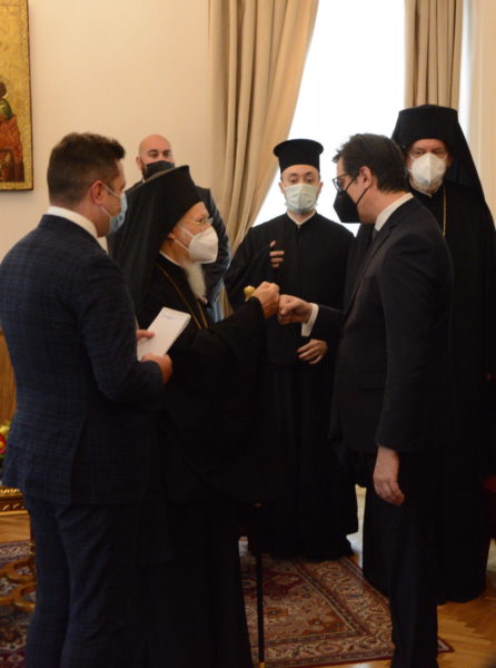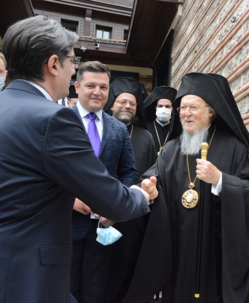 Ο Οικουμενικός Πατριάρχης αποχαιρέτησε τον Πρόεδρο κ. Stevo Pendarovski στα προπύλαια του Πατριαρχείου, κατά την αναχώρησή του από το Φανάρι, και τον ευχαρίστησε για την επίσκεψή του και για την ενδιαφέρουσα συζήτηση που είχαν.