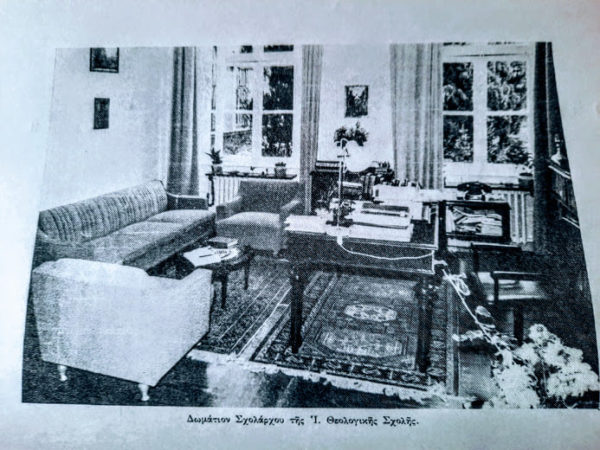 Άκουγα συνεχώς παράπονα από τους τότε σπουδαστές για την αυστηρότητα του Σχολάρχου τους και για τις εκτός του ναϋδρίου χειροτονίες του, σαν δε μικρός και άτακτος επισκέπτης της Σχολής συχνά γινόμουν δέκτης παρατηρήσεων και παραινέσεών του, είτε για το ότι θορυβούσα, είτε όταν τραυματιζόμουν στα γόνατα τρέχοντας στους κήπους και έπρεπε να πάω στο νοσοκομείο της Σχολής για πανσουμάν (πρώτες βοήθειες)…