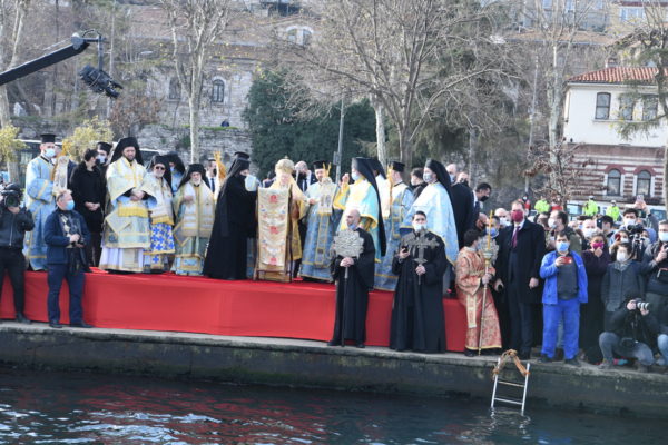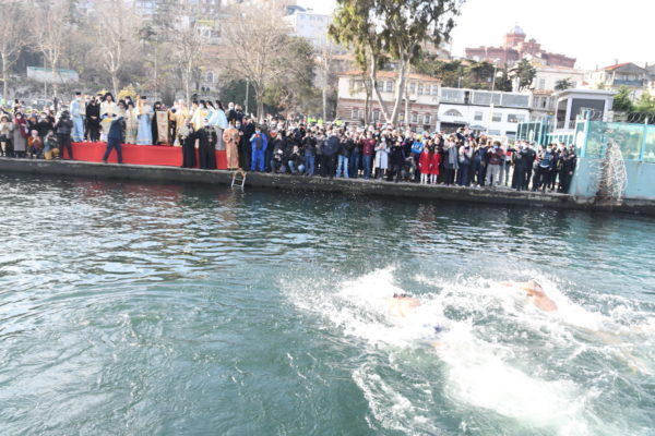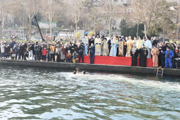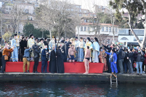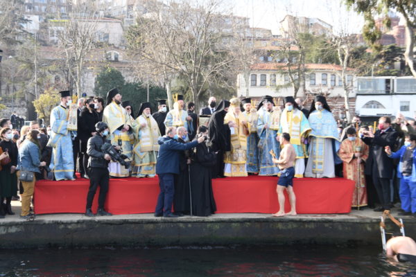 Στα κρύα νερά του Κερατίου, βούτηξαν δύο νέοι από την Πόλη, και τον Τίμιο Σταυρό έπιασε ο κ. Βασίλειος Κιουρκτσού, εργαζόμενος στο Πατριαρχείο, στον οποίο ο Οικουμενικός Πατριάρχης προσέφερε ως ευλογία χρυσό επιστήθιο σταυρό, ενώ ευλόγησε και τον δεύτερο κολυμβητή, ευχαριστώντας αμφοτέρους που, παρά τις δυσκολίες που προκαλεί η πανδημία και τους περιορισμούς που έχει φέρει στη ζωή μας, τήρησαν το έθιμο.