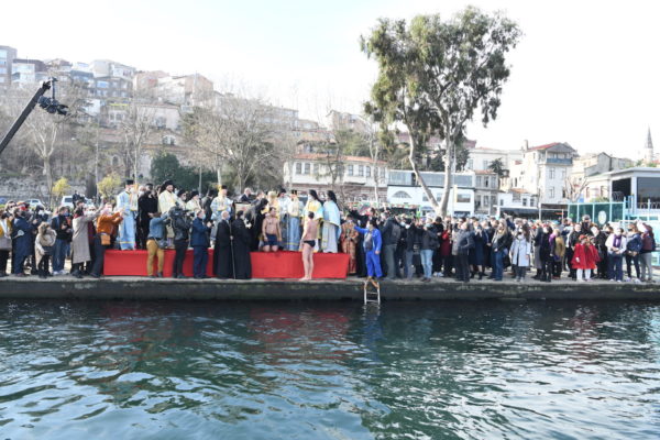 Μετά το τέλος της Θείας Λειτουργίας ο Οικουμενικός Πατριάρχης, οι Αρχιερείς, οι επίσημοι και ο πιστός λαός εν πομπή μετέβησαν στην προκυμαία του Φαναρίου όπου ο Παναγιώτατος προεξήρχε της τελετής του Αγιασμού των υδάτων και της καταδύσεως του Τιμίου Σταυρού στον Κεράτιο Κόλπο.