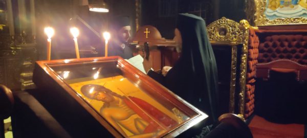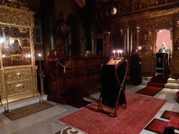 Με ιεροπρέπεια και κατάνυξη τελέστηκε “εν τω μέσω της νυκτός” κατά το εσπέρας της Κυριακής των Βαΐων (25/4/2021) η Ακολουθία του Νυμφίου, ήτοι του Όρθρου της Αγίας και Μεγάλης Δευτέρας Δευτέρας, με τον οποίο ξεκινά η εβδομάδα των Παθών του Κυρίου, χοροστατούντος από του Παραθρονίου του Καθηγουμένου, Θεοφιλεστάτου Επισκόπου Αραβισσού κ. Κασσιανού.
