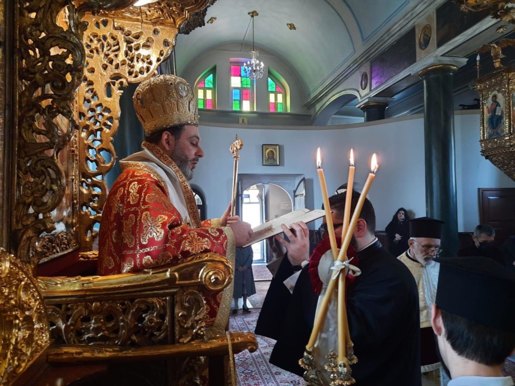 Συμπροσευχόμενοι παρέστησαν οι Σεβασμιώτατοι Αρχιερείς Μητροπολίτης Γέρων Πριγκηποννήσων κ. Δημήτριος, Μητροπολίτης Φιλαδελφείας κ. Μελίτων και Αρχιεπίσκοπος Ανθηδώνος κ. Νεκτάριος, Επίτροπος του Παναγίου Τάφου ενταύθα.