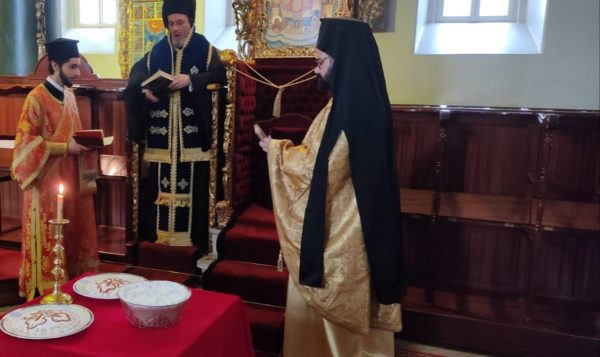 Μετά το πέρας της Θείας Λειτουργίας ανεγνώσθη υπό του Καθηγούμενου τρισάγιο υπέρ των απ’ αιώνος κεκοιμημένων και ευλογήθηκαν τα προσκομισθέντα κόλλυβα.