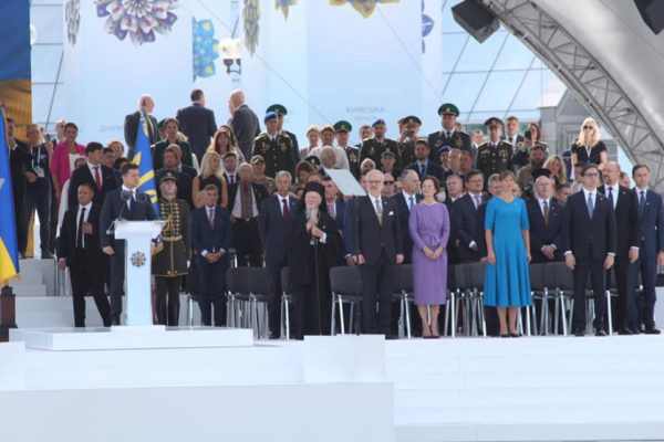 O Παναγιώτατος Οικουμενικός Πατριάρχης κ.κ. Βαρθολομαίος παρέστη σήμερα, 24 Αυγούστου 2021, ως επίσημος προσκεκλημένος του Προέδρου της Ουκρανίας Εξοχ. κ. Βολοντίμιρ Ζελένσκι, στις εορταστικές εκδηλώσεις για την επέτειο των 30 ετών από την ανεξαρτησία του Ουκρανικού Κράτους.