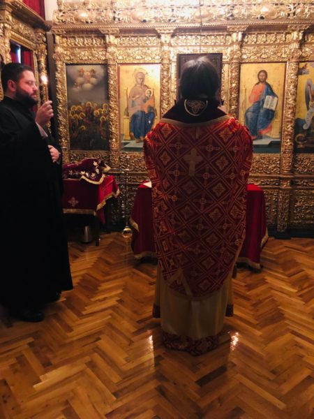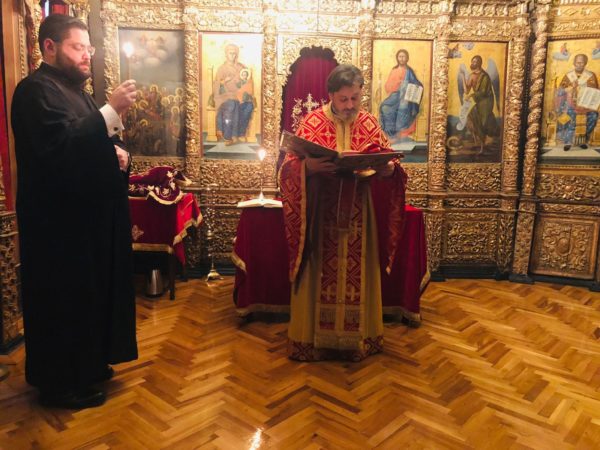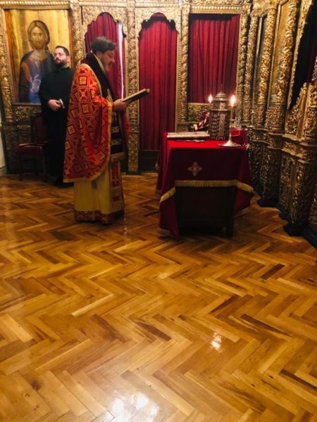 Νωρίτερα στο παρακείμενο της Αίθουσας Τελετών της Σχολής παρεκκλήσιο της Παναγίας της Καμαριωτίσσης ο Αναστάσιμος Όρθρος και η Θεία Λειτουργία, ιερουργούντος του Καθηγουμένου, Θεοφιλεστάτου Επισκόπου Αραβισσού κ. Κασσιανού.