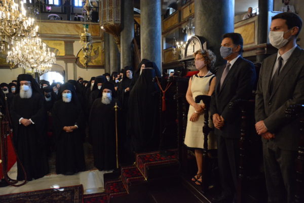 Εκκλησιάστηκαν o Σεβ.Αρχιεπίσκοπος Ανθηδώνος κ. Νεκτάριος, Επίτροπος του Παναγίου Τάφου στην Πόλη, η Γενική Πρόξενος στην Πόλη Ευγεν. κ. Γεωργία Σουλτανοπούλου, μαζί με τον σύζυγό της Εξοχ. κ. Ιωάννη Ραπτάκη, Πρέσβη της Ελλάδος στην Μ. Βρετανία, ο Εντιμ. κ. Oleksandr Gaman, Γενικός Πρόξενος της Ουκρανίας στην Πόλη, ο νέος Άρχων Πρωτοασηκρήτης Εντιμολ. κ. Σωτήριος Τσιόδρας, Καθηγητής Πανεπιστημίου, Άρχοντες Οφφικιάλιοι, κληρικοί, μοναχοί και μοναχές, και πιστοί από την Πόλη, την Ελλάδα και άλλες χώρες.