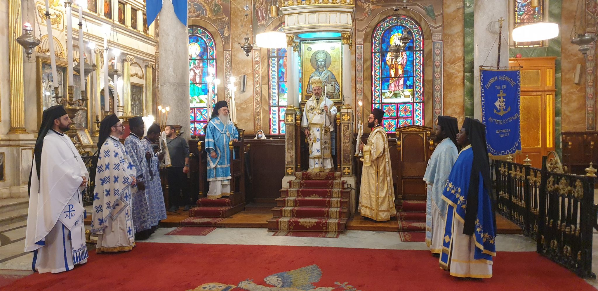 Τη Θεία Λειτουργία και τη Δοξολογία τέλεσε ο Μητροπολίτης Μέμφιδος και Πατριαρχικός Επίτροπος Καΐρου κ. Νικόδημος, ενώ παραβρέθηκε και ο Αρχιεπίσκοπος Σινά κ. Δαμιανός.