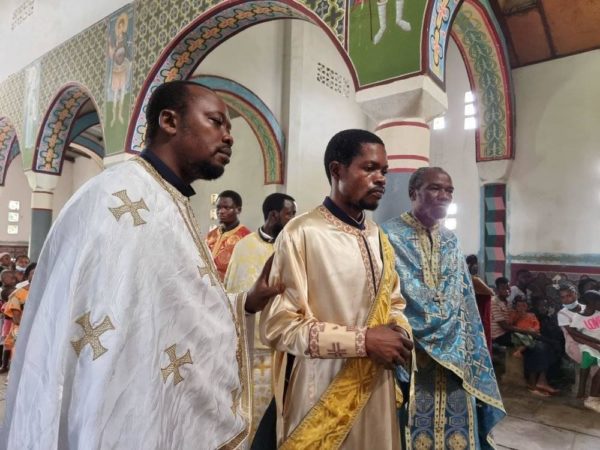 Την εις πρεσβύτερον χειροτονία του Θεολόγου π. Βασιλείου τέλεσε σήμερα το πρωί στον πανηγυρίζοντα Ιερό Ναό Αγίας Σοφίας Λουκόγκα (στα περίχωρα της Κανάγκας του Κονγκό) ο Σεβασμιώτατος Μητροπολίτης Κανάγκας κ. Θεοδόσιος.