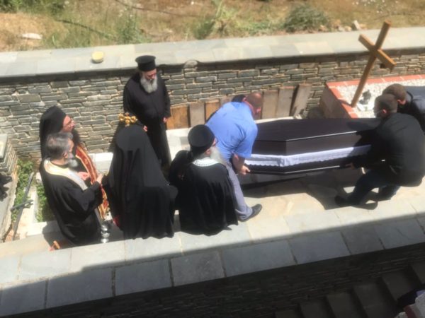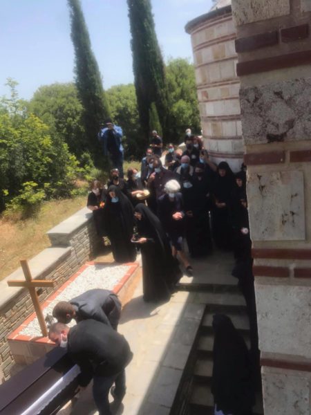 Την εξόδιο ακολουθία τέλεσε ο Σεβ. Μητροπολίτη Ειρηνουπόλεως κ. Δημήτριος, με την παρουσία πλειάδος Ιερέων, δεκάδων Μοναζουσών και πολλών παιδιών της Αφρικής.