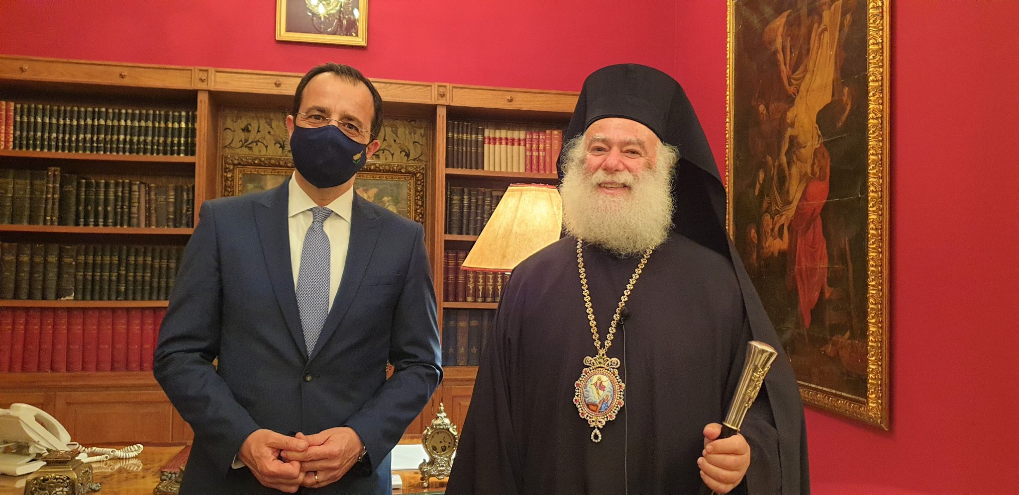 Στο «πολυεπίπεδο έργο» του Πατριάρχη Αλεξανδρείας κ.κ. Θεοδώρου Β’, το οποίο, όπως είπε, αναγνωρίζεται «σε ολόκληρη την περιοχή», αναφέρθηκε ο Υπουργός Εξωτερικών της Κύπρου, Νίκος Χριστοδουλίδης κατά τη συνάντησή του με τον Αλεξανδρινό Προκαθήμενο το Σάββατο 22 Μαΐου 2021. Τις ευχές του προς τον κυπριακό λαό «να έρθει η δικαίωση» έδωσε από την πλευρά του ο Μακαριώτατος, υποδεχόμενος τον Υπουργό Εξωτερικών στη δεύτερη έδρα του Παλαίφατου Πατριαρχείου, στο Κάιρο.