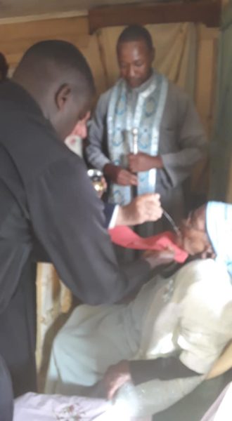Μία γηραιά κυρία 106 ετών ζήτησε από τον Σεβασμιώτατο Μητροπολίτη Γέροντα Ναϊρόμπι, Yπέρτιμο και Έξαρχο Κένυας κ. Μακάριο να την επισκεφθεί και να την μεταλάβει, από όπου παραθέτουμε τα επίκαρα φωτογραφικά στιγμιότυπα. Ο Σεβασμιώατος ευχήθηκε ο Θεός να την έχει γερή και να ζήσει και άλλα πολλά ευλογημένα χρόνια.