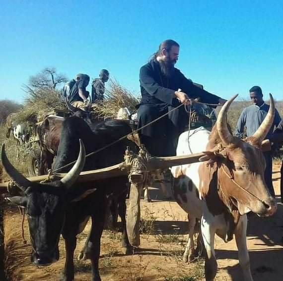 “Για πολλά χρόνια αυτό το ξέχασα σαν συνειρμό. Φτάνοντας, όμως, στην ιεραποστολή κατάλαβα επακριβώς το “γιατί” της επιλογής. Δεν είναι λίγες οι φορές κατά τις οποίες βοϊδάμαξες με έσυραν σε χωριά δυσπρόσιτα. Μέσα από λάσπες και αφράτη άμμο. Πάνω σε πέτρες και ανάμεσα σε λακούβες όμοιες με κρατήρες βομβαρδισμών. Και τότε είδα το παράδοξο. Γιγαντόσωμα ζώα, με κέρατα θεόρατα να περπατούν σε ρυθμό λιτανείας, προσεκτικά και σταθερά, ως όλη η ζωή του όντως χριστιανού, οι αλυσίδες της αμαξάς να χτυπούν με σταθερή περιοδικότητα, μεταλλικοί ήχοι σαν θυμιατό και κατζίο κατά τη διάρκεια όπου χοροί αγιορείτικοι ψάλλουν το “Εξομολογείσθε τω Κυρίω”. Τα κέρατά τους, σαν τα κέρατα του θυσιαστηρίου του Ναού του Σολομώντος, να αιωρούνται, να συγκρούονται, να κροταλίζουν, ως κύμβαλα αλαλάζοντα που αινούν το Δημιουργό τους, ως τάλαντα μοναστηριακά που σημαίνουν το μυστηριο. Και στο βάθος ο ήλιος να σβήνει, κάνοντας το ιερό κατανυκτικό. Δόξα Τον!”.