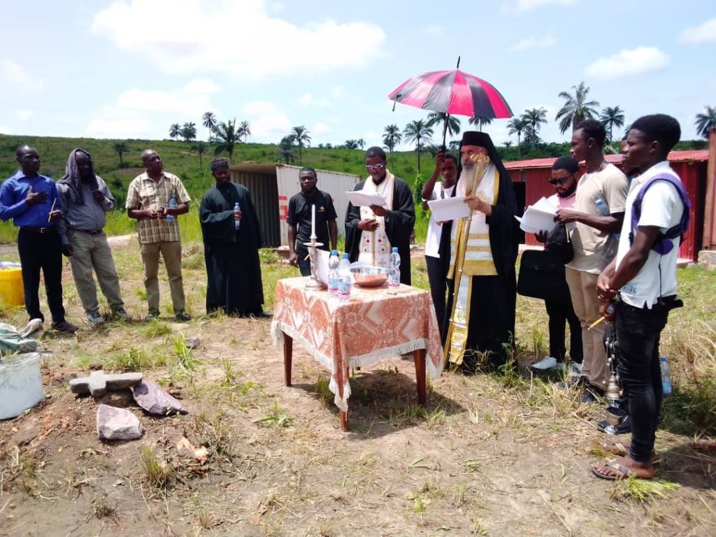 Μετά την ιερά τελετή της θεμελιώσεως Ναού ευλόγησε τον δόκιμο της Μονής Βασίλειον Mutondo, απόφοιτον της Σχολής.