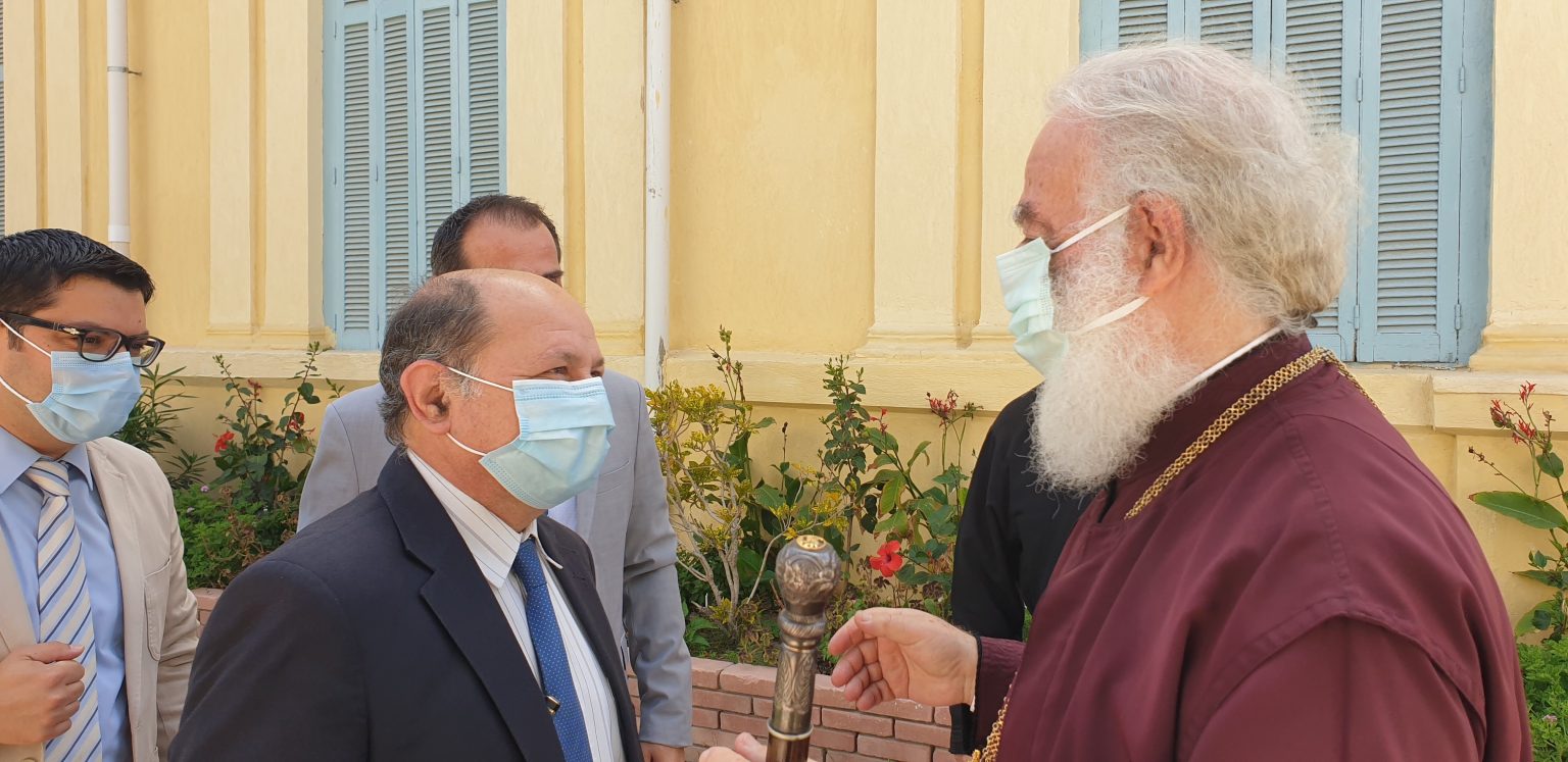 Τον Αλεξανδρινό Προκαθήμενο κ.κ. Θεόδωρο Β΄ που κατέφθασε στο χώρο του Ελληνικού Τετραγώνου του Σάτμπι με τον Πατριαρχικό Επίτροπο Αλεξανδρείας Μητροπολίτη Ναυκράτιδος κ. Νάρκισσο, υποδέχτηκαν ο Α΄ Αντιπρόεδρος της Ελληνικής Κοινότητας Αλεξανδρείας κ. Ανδρέας Βαφειάδης, ο Γενικός Γραμματέας της ΕΚΑ κ. Δημήτρης Κάβουρας και ο Κοινοτικός Επίτροπος και πρώην Αντιπρόεδρος κ. Νικόλας Κόπελος.