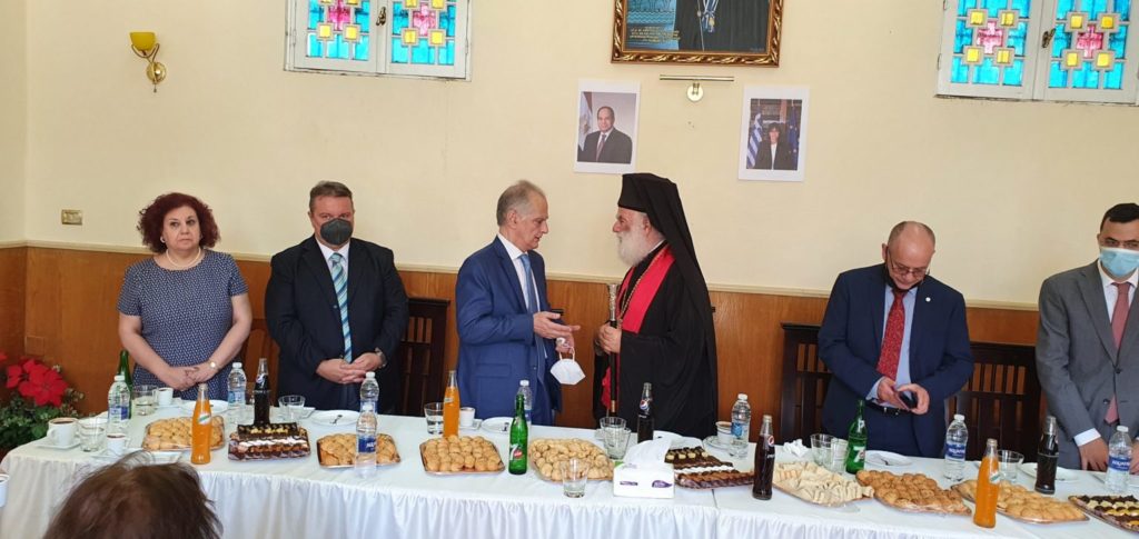 Αναφέρθηκε για άλλη μια φορά στην επίσκεψη που πραγματοποίησε ο Έλληνας Υπουργός Εξωτερικών κ. Νίκος Δένδιας στον ναό και είπε ότι τις επόμενες μέρες θα υποδεχθεί στην Πατριαρχική Επιτροπεία Καϊρου στο Χαμζάουι και τον ΥΠΕΞ της Κύπρου. Ο Πατριάρχης Θεόδωρος ευχαρίστησε ιδιαιτέρως τον Πρέσβη της Ελλάδος κ. Νικόλαο Γαριλίδη ο οποίος αφουγκράζεται τον παλμό των Αιγυπτιωτών. Επανάλαβε τις ευχαριστίες του στον Αιγύπτιο Πρόεδρο Αμπντέλ Φατάχ Αλ Σίσι, για την ανθρωπιστική προσφορά του στους δοκιμαζόμενους Παλαιστίνιους. Ιδιαιτέρως όμως ευχαρίστησε τη Μεγάλη Ευεργέτιδα της Ε.Κ.Κ κ. Αικατερίνη Μπελεφάντη – Σοφιανού για τη νέα σπουδαία δωρεά που έκανε στο ναό με στόχο την κάλυψη των Λειτουργικών αναγκών του.