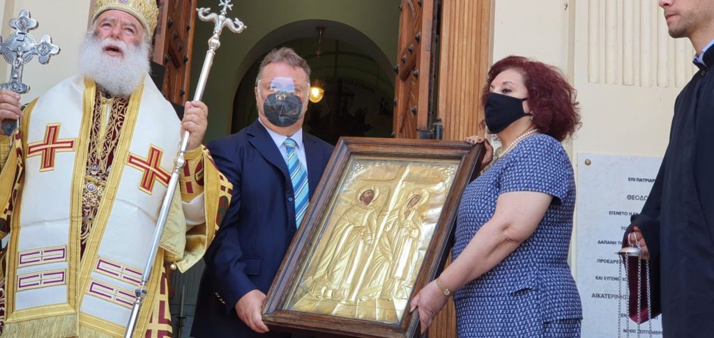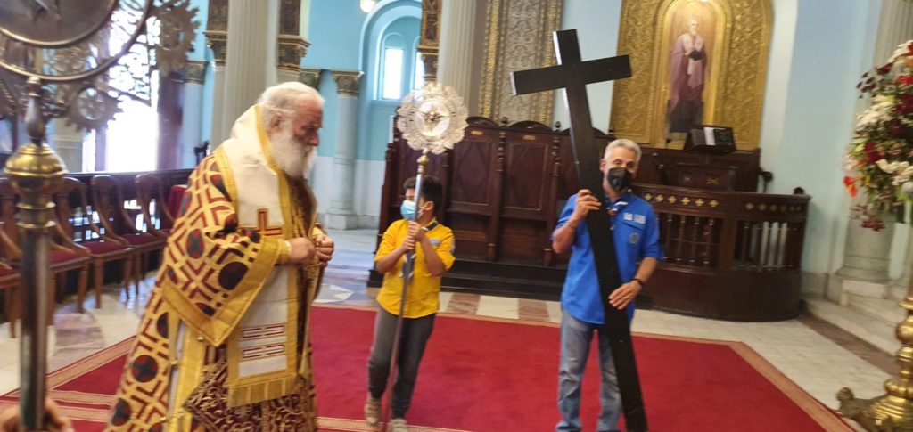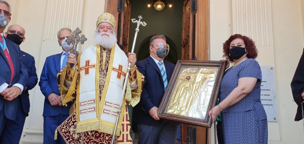 Ο Πατριάρχης Θεόδωρος ευλόγησε όλο το εκκλησίασμα αλλά και τους Πρόσκοπους του Καΐρου, υπό τον Αρχηγό τους Γιάννη Μελαχροινούδη, οι οποίοι τον υποδέχθηκαν όπως κάθε φορά άλλωστε με την φιλαρμονική τους. Μετά τη Θεία Λειτουργία ακολούθησε η περιφορά της Ιεράς Εικόνας των Αγίων Κωνσταντίνου και Ελένης γύρω από το ναό.