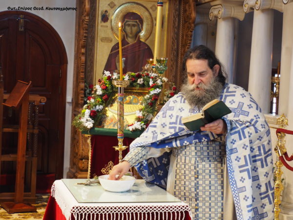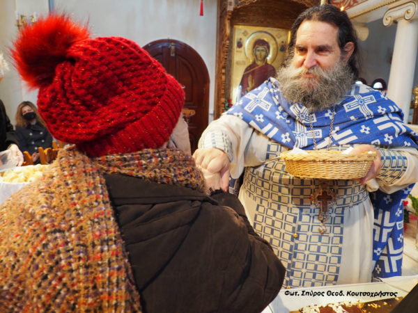 Ο π. Ευάγγελος πριν τον Αγιασμό για το Νέο Έτος, την κοπή και διανομή της Βασιλόπιτας με τον ” ανάλογο μποναμά “, ανέγνωσε ” Αρχαία οπισθάμβ​ωνα ευχή ” του 11ου αιώνα – ευχαριστία προς τον Κύριο ημών Ιησού Χριστό, που δώρισε στην Οικουμένη τον Μέγα Βασίλειο.