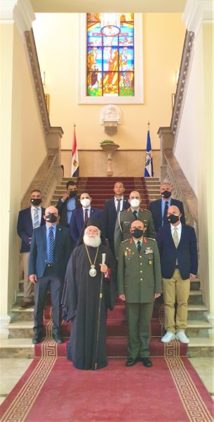 Και παράλληλα, ενημέρωσε τον Αλεξανδρινό Προκαθήμενο για τις συναντήσεις κορυφής που είχε χθες τόσο με τον Υπουργό Άμυνας της Αιγύπτου, Στρατηγό Μοχάμεντ Ζάκι όσο και τον ομόλογό του Αρχηγό των Αιγυπτιακών Ενόπλων Δυνάμεων Αντιστράτηγο Μοχάμεντ Φαρίντ Χεγκάζι, επισημαίνοντας ότι «οι συζητήσεις που γίνανε τόσο με τον Υπουργό Άμυνας της Αιγύπτου όσο με τον Αρχηγό των Ενόπλων Δυνάμεων ήταν σε εξαιρετικό επίπεδο και αναδεικνύουνε το επίπεδο των σχέσεων μεταξύ τόσο της Εθνικής Φρουράς και των Αιγυπτιακών Ενόπλων Δυνάμεων όσο και μεταξύ των δύο εθνών, τα οποία συμβάλλουνε με τα έργα τους στην ασφάλεια και τη σταθερότητα της περιοχής της Ανατολικής Μεσογείου».