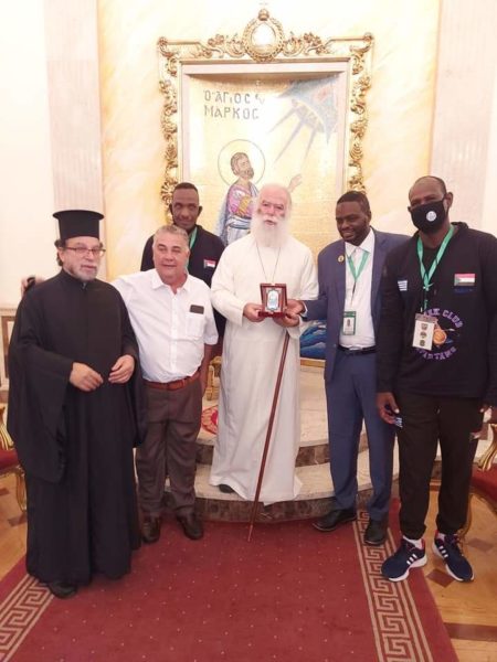 Σήμερα, Πέμπτη, 30 Σεπτεμβρίου 2021, η Α.Θ.Μ. ο Πάπας και Πατριάρχης Αλεξανδρείας και πάσης Αφρικής κ.κ. Θεόδωρος Β’, υποδέχθηκε με ιδιαίτερη χαρά στην Πατριαρχική Καθέδρα την 20μελή αποστολή της ομάδας μπάσκετ «Ελληνική Αθλητική Οργάνωση ΕΛΛΑΣ-ΣΟΥΔΑΝ «ΣΠΑΡΤΑΝΣ»», συνοδευόμενη από τον Σεβασμιώτατο Μητροπολίτη Νουβίας κ. Σάββα, τον Πρόεδρο της Ελληνικής Κοινότητος Χαρτούμ και τον Εκπρόσωπο της Ομοσπονδίας Καλαθοσφαίρισης του Σουδάν, η οποία βρίσκεται στην Αλεξάνδρεια με σκοπό την συμμετοχή της στο Αραβικό πρωτάθλημα μπάσκετ.