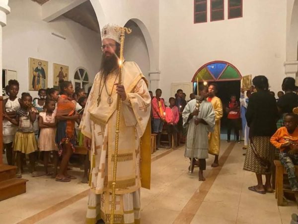 Στη μακρινή Μαδαγασκάρη, όπου διακονεί την ορθόδοξη εκκλησία, τέλεσε την Ακολουθία της Αναστάσεως (της Παννυχίδος πιο σωστά) ο Θεοφιλέστατος Επίσκοπος Τολιάρας και Νοτίου Μαδαγασκάρης κ. Πρόδρομος, που έψαλλε το «Χριστός Ανέστη» στα ελληνικά, αλλά και στην τοπική γλώσσα χθες το βράδυ. Μάλιστα, στο τέλος της Πασχαλινής Θείας Λειτουργίας, τα παιδιά που συμμετείχαν, εκτός από «Χριστός Ανέστη», είπαν και «Καλημέρα Ελλάδα!»