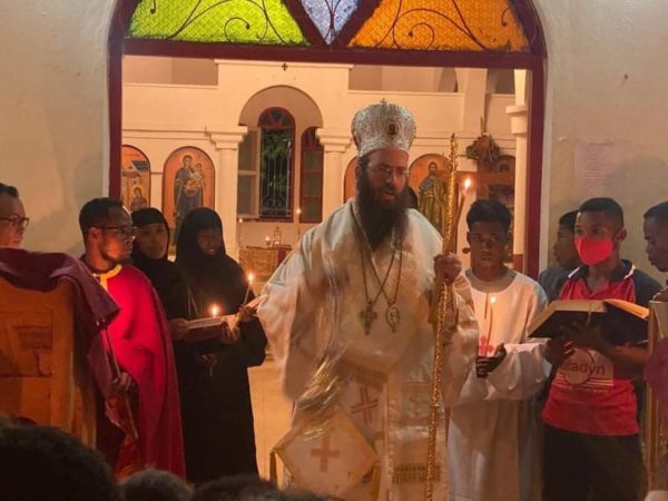 Στη μακρινή Μαδαγασκάρη, όπου διακονεί την ορθόδοξη εκκλησία, τέλεσε την Ακολουθία της Αναστάσεως (της Παννυχίδος πιο σωστά) ο Θεοφιλέστατος Επίσκοπος Τολιάρας και Νοτίου Μαδαγασκάρης κ. Πρόδρομος, που έψαλλε το «Χριστός Ανέστη» στα ελληνικά, αλλά και στην τοπική γλώσσα χθες το βράδυ. Μάλιστα, στο τέλος της Πασχαλινής Θείας Λειτουργίας, τα παιδιά που συμμετείχαν, εκτός από «Χριστός Ανέστη», είπαν και «Καλημέρα Ελλάδα!»