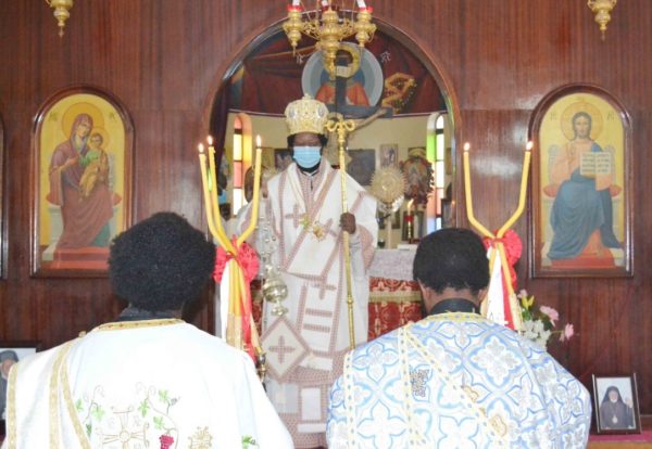 Τρισάγιο τελέσθηκε για τον μακαριστό Μητροπολίτη Καμπάλας κυρό Ιωνά, στο τέλος της χθεσινής Θείας Λειτουργίας (Προ της Υψώσεως του Τιμίου Σταυρού), προεξάρχοντος του Θεοφιλεστάτου Επισκόπου Γκούλου κ. Σιλβέστρου.