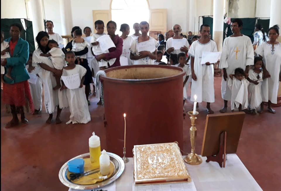 Το ιερό μυστήριο της βάπτισης γίνεται όλο και πιο συχνά, όλο και με περισσότερη λαχτάρα στην μητρόπολη Β. Μαδαγασκάρης πάντα με την παρουσία του σεβασμιωτάτου Μητροπολίτου μας κ.κ. Ιγνατίου. Η παρουσία του φλόγα ασβέστη, φάρος ορθοδοξίας.