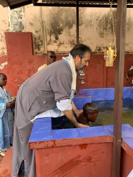 Τηρώντας την παράδοση αυτή της Εκκλησίας ο Μητροπολίτης Καμερούν κ. Γρηγόριος τέλεσε χθες, Μεγάλο Σάββατο, βαπτίσεις κατηχουμένων στην Εκκλησιαστική Κοινότητα του Ευαγγελισμού της Θεοτόκου στο Yaoundé – Καμερούν.