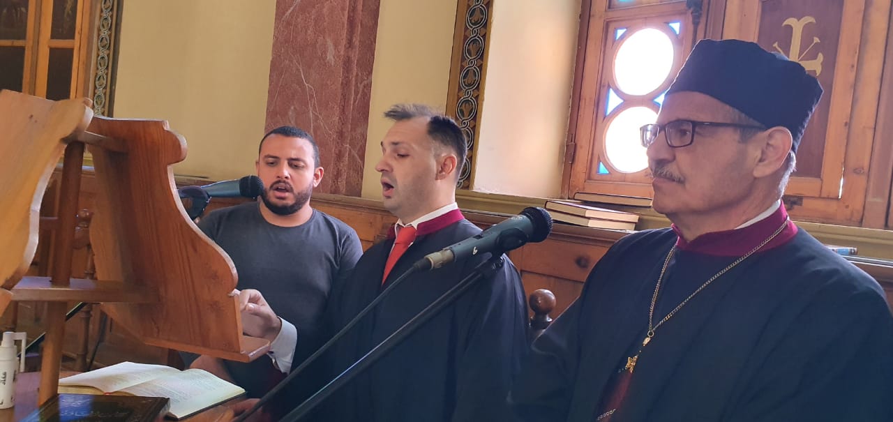 Τον Προκαθήμενο του Δευτερόθρονου Πατριαρχείου πλαισίωσε ο Πατριαρχικός Επίτροπος Καΐρου και Μητροπολίτης Μέμφιδος κ. Νικόδημος, ο Μητροπολίτης Ερμουπόλεως κ. Νικόλαος, ο Επίσκοπος Βαβυλώνος κ. Θεόδωρος, ο Καθηγούμενος της Ιεράς Μονής του Αγίου Γεωργίου Αρχιμανδρίτης, Δαμασκηνός Αλαζράι, ο Μ. Εκκλησιάρχης του Πατριαρχείου Αλεξανδρείας Αρχιμ. Στέφανος Σουλιμιώτης και οι πατέρες της Μονής Ιωακείμ και Παϊσιος. Τους ύμνους έψαλλε ο πρωτοψάλτης της Ε.Κ.Κ. κ. Ιωάννης Κούντριας.