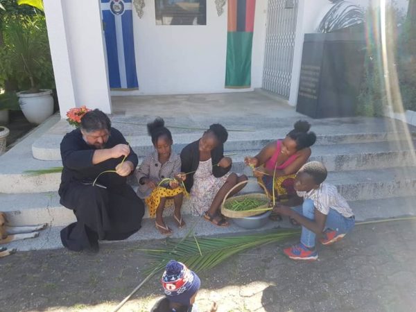 Η προετοιμασία των σταυρών της Κυριακής των Βαΐων με πρωταγωνιστή τον Σεβασμιώτατο Μητροπολίτη Ζάμπιας κ. Ιωάννη και τα μικρά παιδιά της Ιεράς Μητροπόλεως σε επίκαιρα φωτογραφικά στιγμιότυπα. Η Κυριακή των Βαΐων είναι η τελευταία ημέρα πριν την εβδομάδα των Παθών. Ονομάζεται έτσι, γιατί «μετά Βαΐων και κλάδων» έγινε η υποδοχή του Χριστού στα Ιεροσόλυμα. Κάθε τέτοια μέρα οι πιστοί βγαίνουν από τις εκκλησίες με τα σταυρουδάκια στο χέρι. Οι ναοί στολίζονται με κλαδιά από βάγια, από φοίνικες δηλαδή ή από άλλα νικητήρια φυτά, όπως δάφνη, ιτιά, μυρτιά και ελιά. Μετά τη λειτουργία μοιράζονται στους πιστούς.