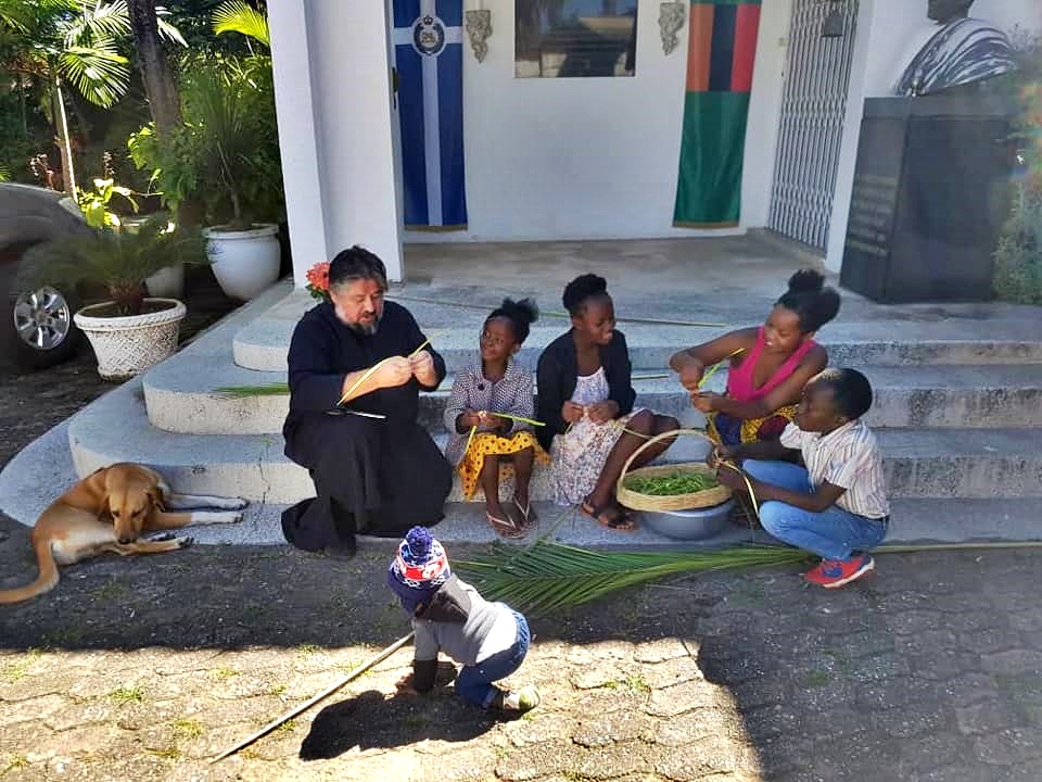 Η προετοιμασία των σταυρών της Κυριακής των Βαΐων με πρωταγωνιστή τον Σεβασμιώτατο Μητροπολίτη Ζάμπιας κ. Ιωάννη και τα μικρά παιδιά της Ιεράς Μητροπόλεως σε επίκαιρα φωτογραφικά στιγμιότυπα. Η Κυριακή των Βαΐων είναι η τελευταία ημέρα πριν την εβδομάδα των Παθών. Ονομάζεται έτσι, γιατί «μετά Βαΐων και κλάδων» έγινε η υποδοχή του Χριστού στα Ιεροσόλυμα. Κάθε τέτοια μέρα οι πιστοί βγαίνουν από τις εκκλησίες με τα σταυρουδάκια στο χέρι. Οι ναοί στολίζονται με κλαδιά από βάγια, από φοίνικες δηλαδή ή από άλλα νικητήρια φυτά, όπως δάφνη, ιτιά, μυρτιά και ελιά. Μετά τη λειτουργία μοιράζονται στους πιστούς.