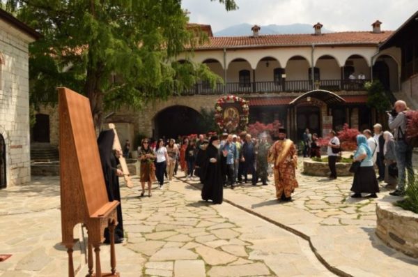 Με την ευλογία του Μακαριωτάτου Πατριάρχη Βουλγαρίας κ.κ. Νεοφύτου και του Σεβασμιωτάτου Μητροπολίτη Πλόβντιβ κ. Νικολάου, ο Σεβασμιώτατος Μητροπολίτης Στάρα Ζαγκόρας κ. Κυπριανός ηγήθηκε της Ιεράς πομπής μαζί με τους πιστούς. Οι πιστοί υποδέχτηκαν την Ιερά Εικόνα της Παναγία στην είσοδο του Μοναστηριού του Μπάτσκοβο μαζί με τον Ηγούμενο και την Μοναστική αδελφότητα ενώ ψάλλοντας το “Χριστός Ανέστη” έφτασαν εντός του Ναού.
