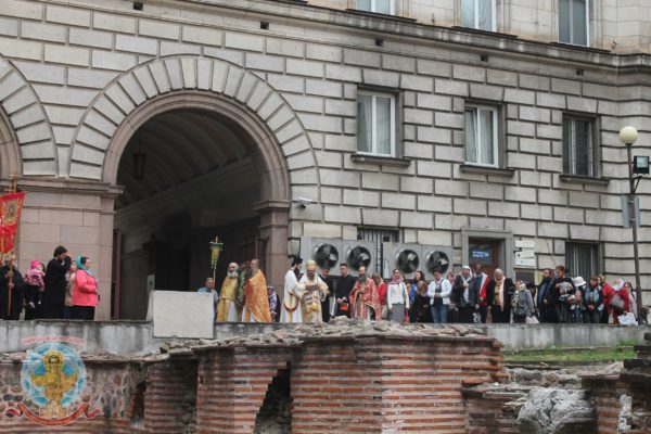 Ο Επίσκοπος Μπελογκραντσίκ κ. Πολύκαρπος τέλεσε την Θεία Λειτουργία στην Ροτόντα με τις ευλογίες του Πατράρχη Βουλγαρίας κ.κ. Νεοφύτου και τους Προϊστάμενους Ιερείς του Ναού αλλά και διακόνους και δεκάδες πιστούς από τη Σόφια.