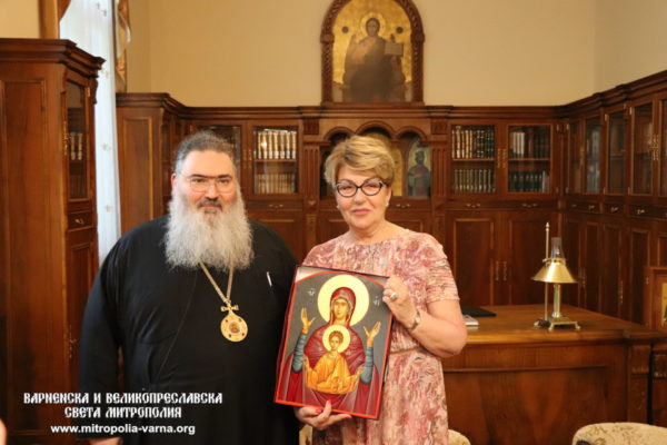 Η κυρία Μιτροφάνοβα και η συνοδεία της έτυχαν θερμής υποδοχής από τον Σεβασμιώτατο στην έδρα της Ιεράς Μητροπόλεως. Στην συνάντηση παρέστη επίσης ο Γενικός Πρόξενος της Ρωσίας στην Βάρνα Βλαντιμίρ Κλιμάνοφ.