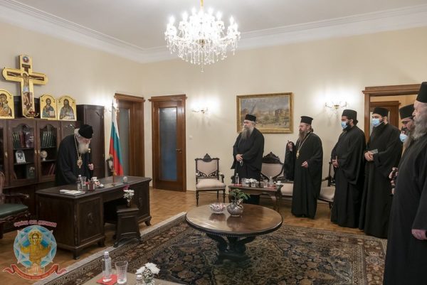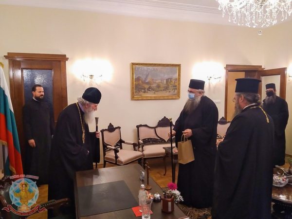 Συνοδεία μοναχών από το Άγιο Όρος με επικεφαλής τον Ηγούμενο της Ιεράς Μονής Εσφιγμένου, Αρχιμανδρίτη Βαρθολομαίο, επισκέφθηκε σήμερα, 23 Σεπτεμβρίου, τον Μακαριώτατο Πατριάρχη Βουλγαρίας κ.κ. Νεόφυτο στο γραφείο του στην Ιερά Μητρόπολη Σόφιας.
