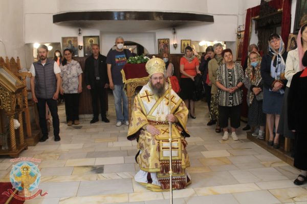 Τέλος ο Επίσκοπος μετέφερε τις ευχές του Μακαριωτάτου Πατριάρχη Βουλγαρίας κ.κ. Νεοφύτου και ευχήθηκε σε όλους τις πρεσβείες του Αγίου.