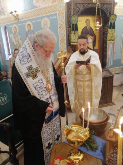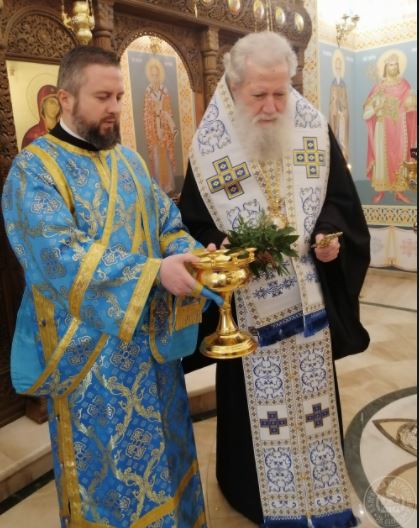 Πανηγυρική θεία λειτουργία για τη μεγάλη δεσποτική γιορτή των Θεοφανείων τελέστηκε σήμερα, Πέμπτη, 6 Ιανουαρίου 2022 στο παρεκκλήσιο της Αγίας Μαρίνας, που βρίσκεται στον προαύλιο χώρο της Πατριαρχικής Κατοικίας στη Σόφια, από τον Αρχιερέα Πέτρο Σλάβοφ και τον Αρχιδιάκονο Ντέγιαν Κορουνόσκι.