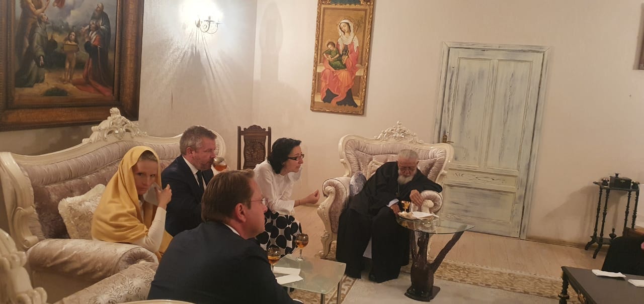 Ο Ευρωπαίος Επίτροπος έτυχε θερμής υποδοχής από τον Προκαθήμενο της Εκκλησίας της Γεωργίας στην Πατριαρχική Κατοικία στην Ιερά Μονή Τιμίου Σταυρού (Jvari) στη Μιτσχέτη.